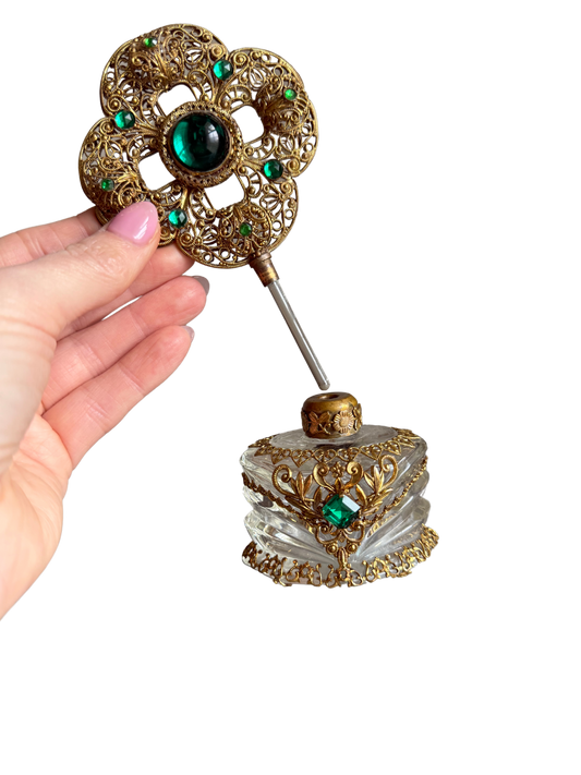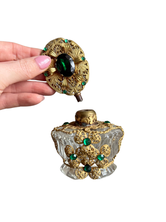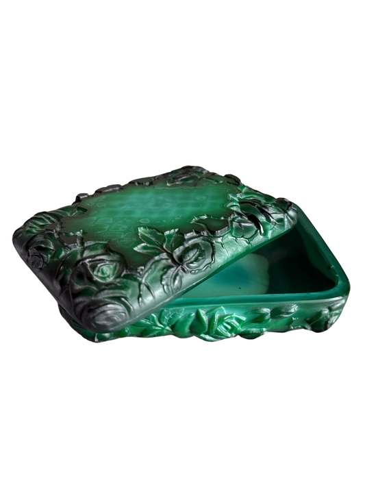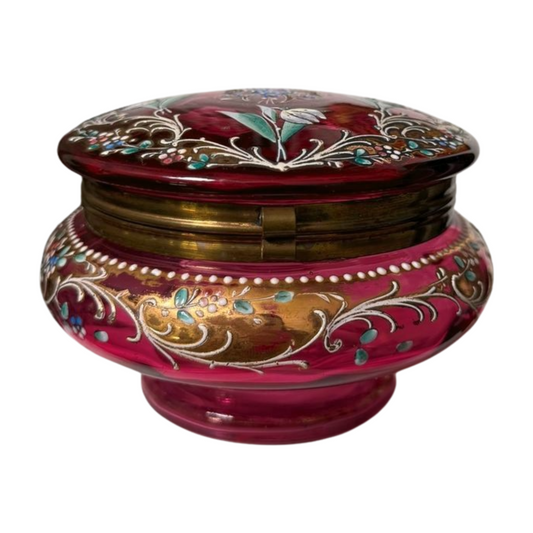 Antique Bohemian Enameled Cranberry Glass Casket with Floral and Gilded Detail