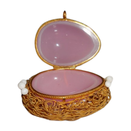 Antique French Pink Opaline Egg in Gilt Bronze Nest