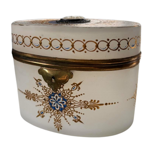 Antique French Gilt Bronze Jewelry Box with Enamel Portrait & Key