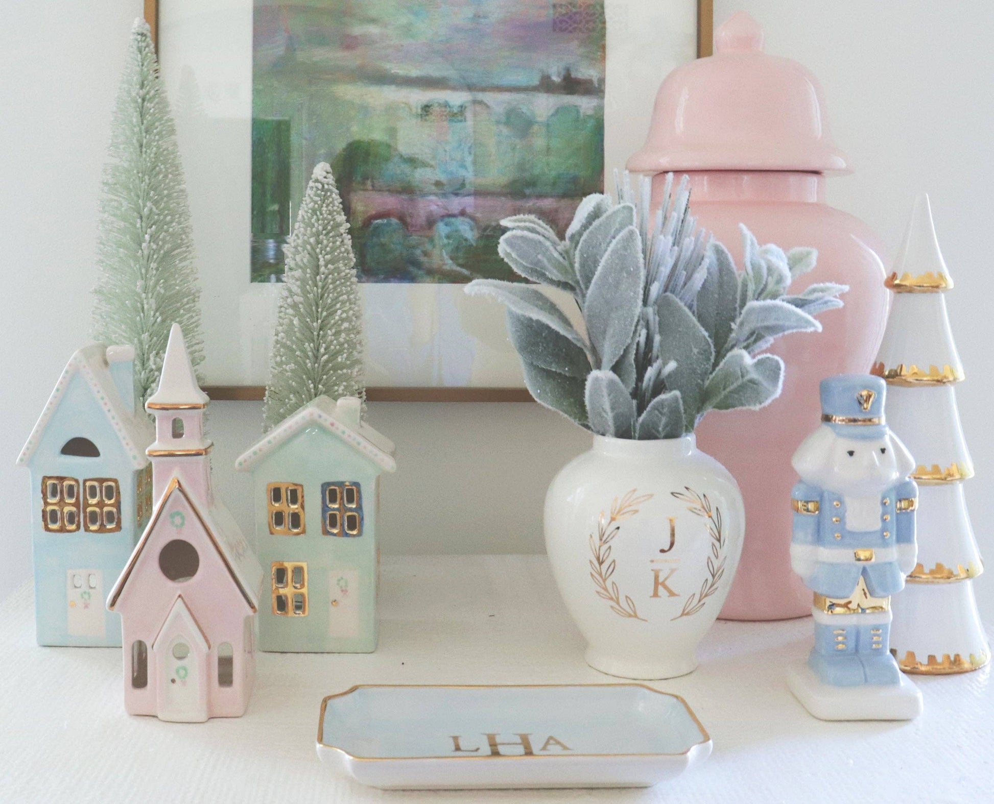 The gorgeous colors and handcrafted charm of these trees make an artful and unique addition to your home for the holidays. Mix and match them to create a personalized and stunning vignette on your holiday table or mantle or sprinkle them about for merry and bright touches throughout your home. Each tree is glazed by hand and adorned with a freehand 22K gold brushstroke trim.
